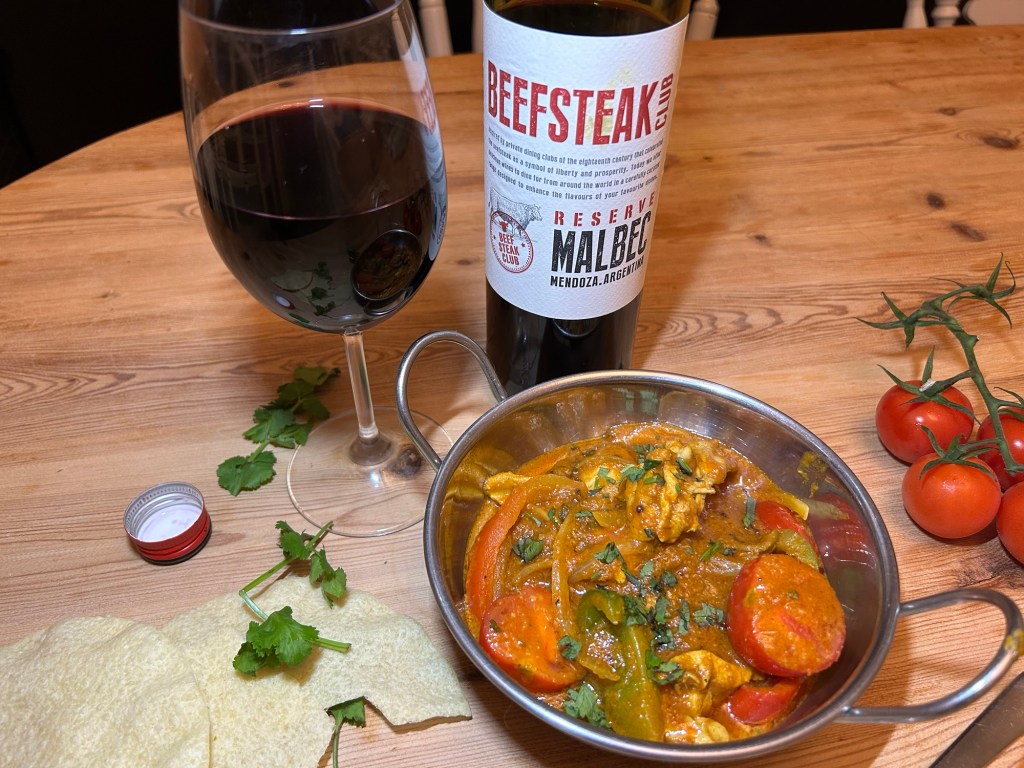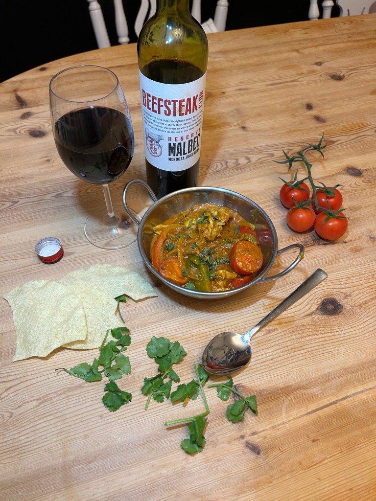 I served mine with some steamed basmati rice…..oh and beautiful red wine to accompany the curry!!