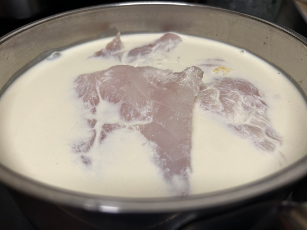 Drain the fish keeping the cooking liquor saying it in a jug and set aside.