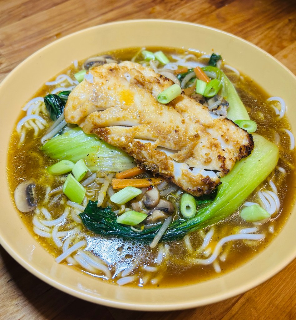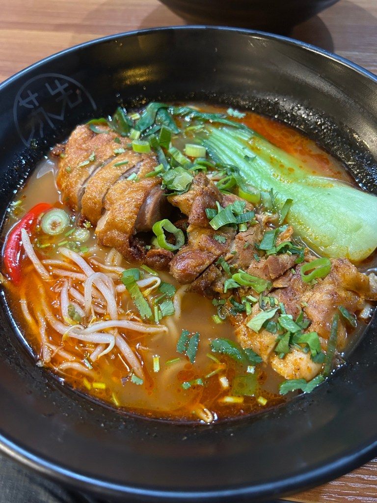I was inspired to cook this dish after having a ramen recently whilst working away in Leeds. I’ve visited Mr Su’s twice in the city and I cannot recommend it highly enough. The value for money and the high quality cooking is insane. Below is the main I had, chicken & duck ramen in a tom yum kung soup the broth. The dish below was £10.90, incredible!!