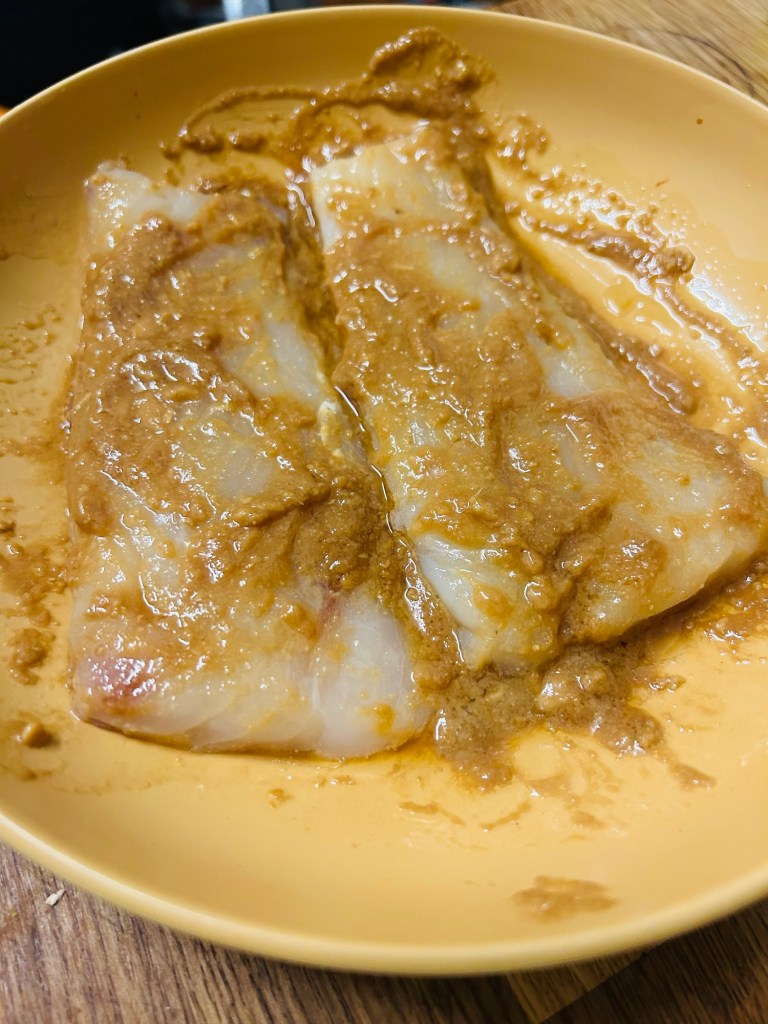 Add the cod fillets and cover them with the paste. Place in the fridge for a minimum of 30 minutes.