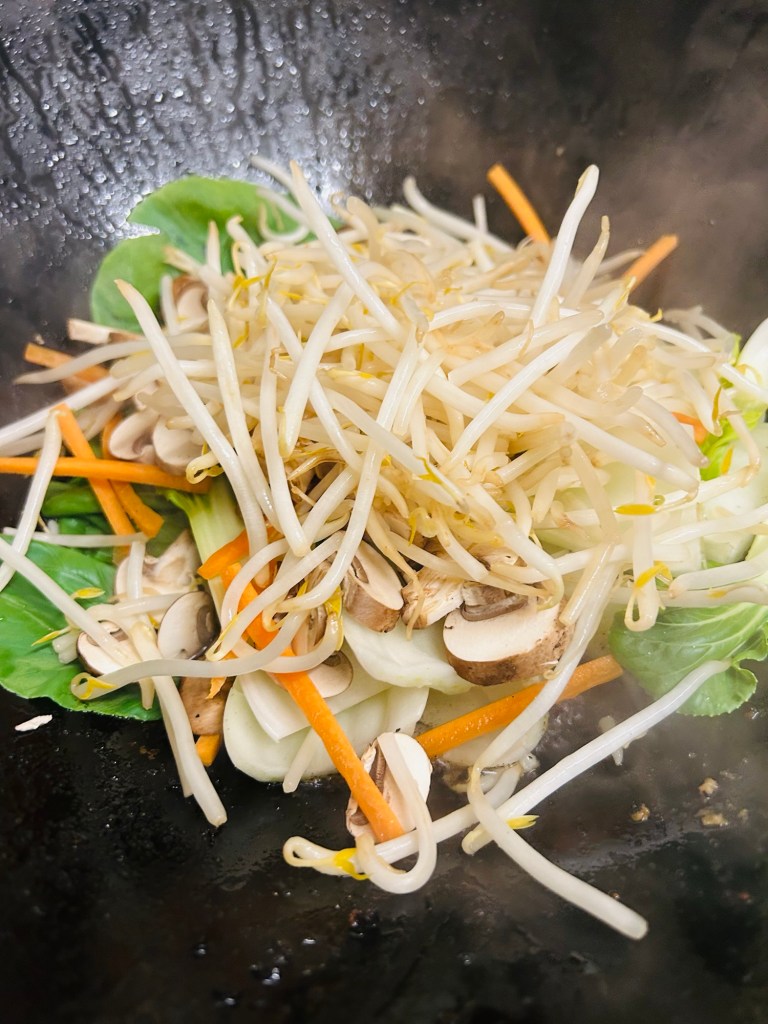 Followed by the beansprouts. These were all stir fried for a couple of minutes.