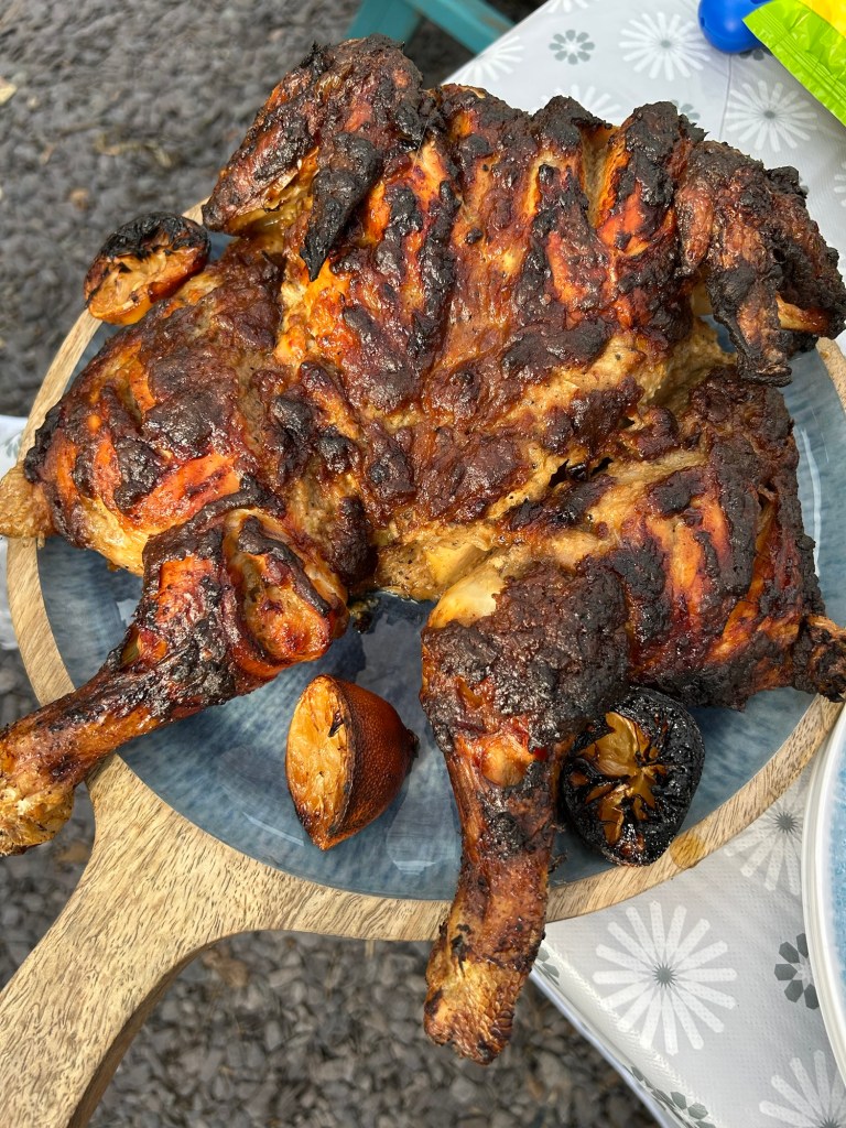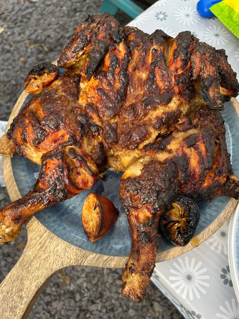 Once I was happy with the core temperature after using a food probe I sat the chicken aside to rest whilst I got the bbq going to cook the rest of food.