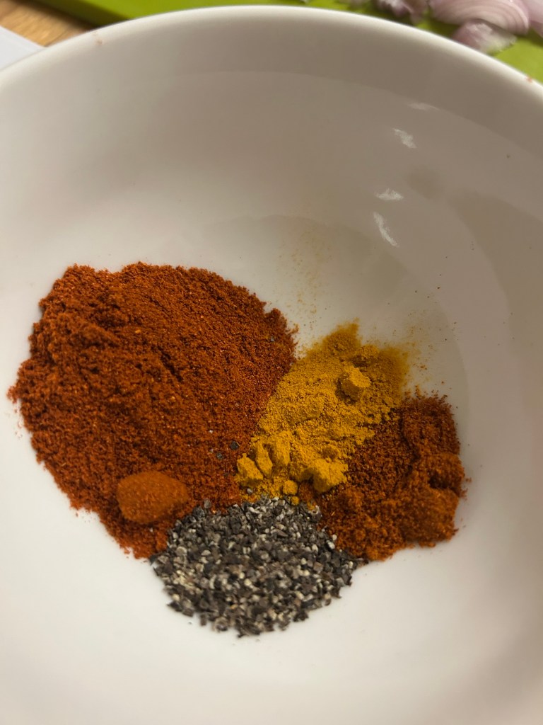 Add the spice mix to the pan off the heat and stir a couple of times.