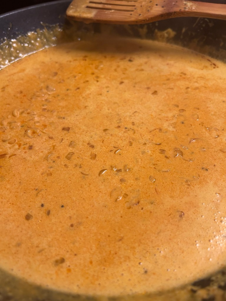 Bring to a simmer stirring as you do. Reduce the heat and cook for a couple of minutes.