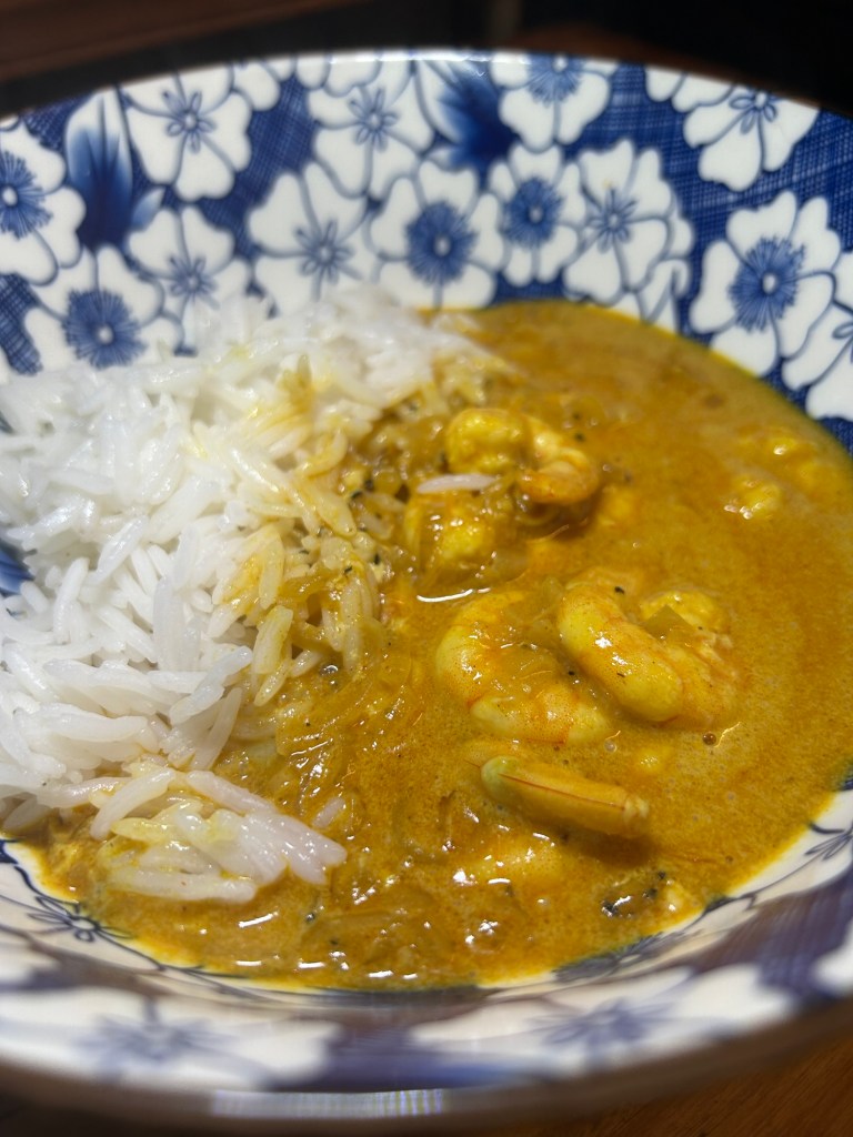 This dish is ideal I’ve you’ve had a busy day in work as the curry can be prepared and cooked within 15 minutes. Make sure you put your rice on as you start to dice the shallots then everything will come together at the same time.