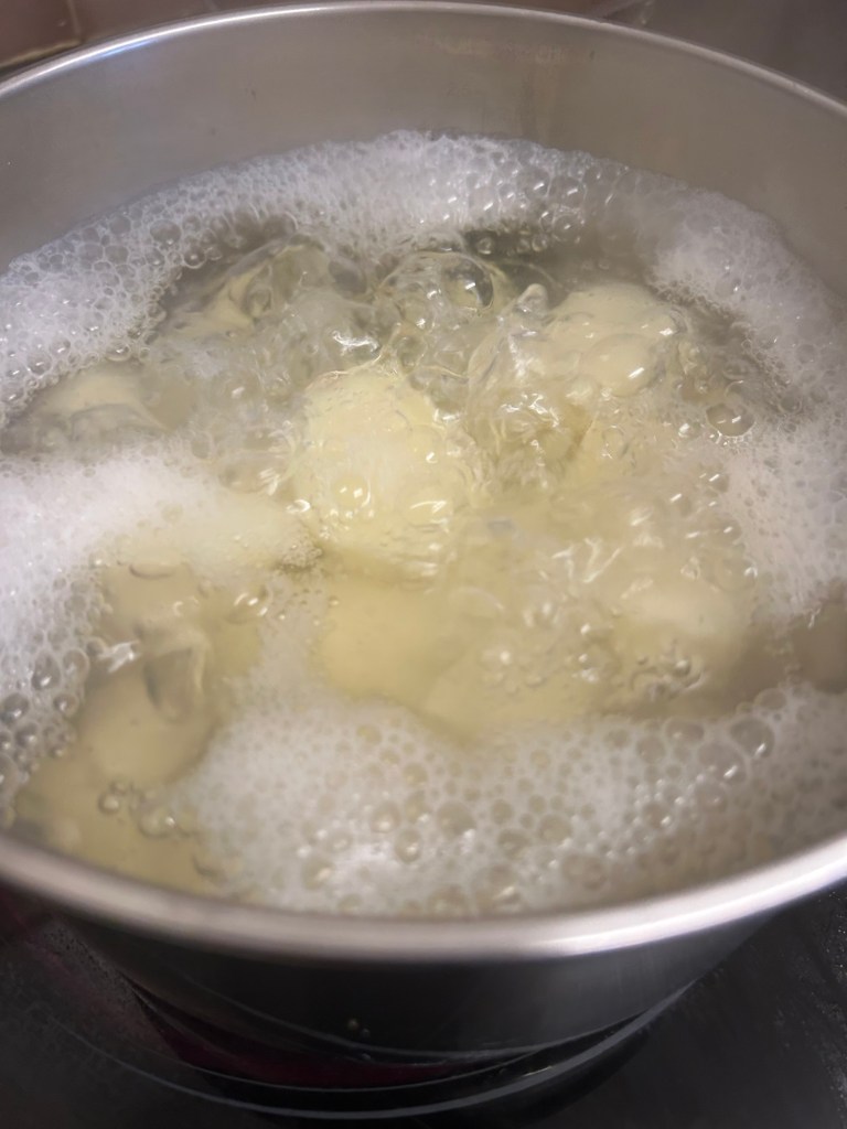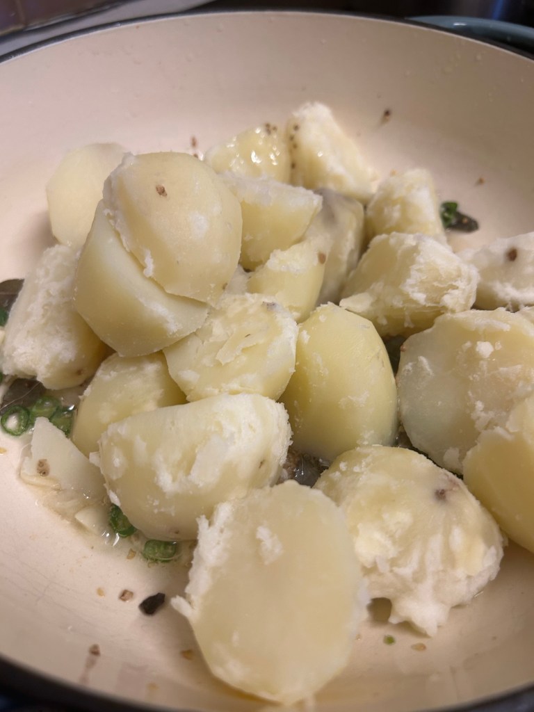 8 small potatoes peeled, cut in half and par-boiled then left to cool