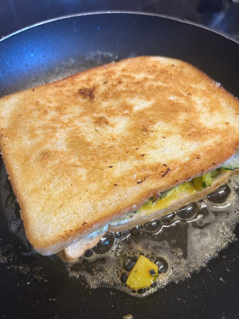 After a couple of minutes gently turn over the sandwich and repeat the process.