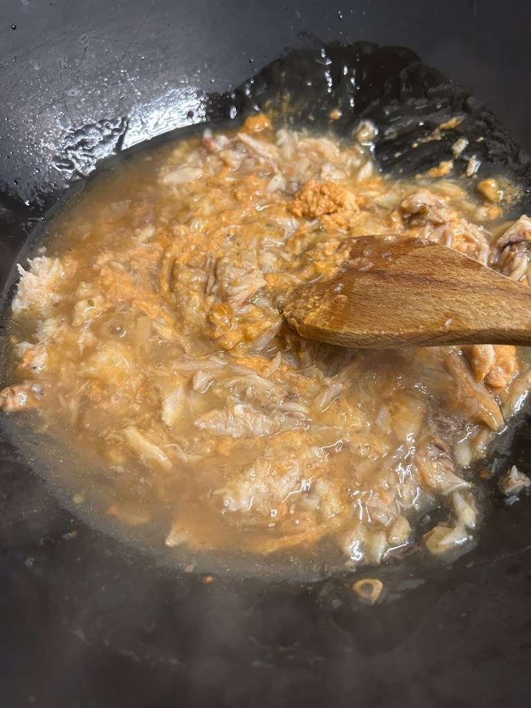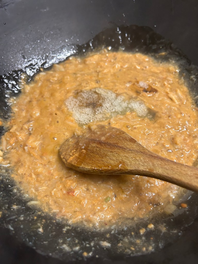 Once the sauce starts to simmer add in your crab meat giving it a good stir……..